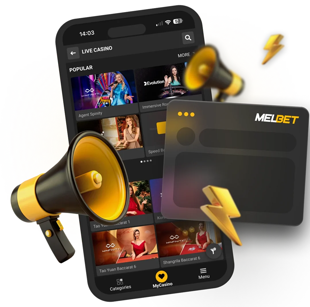 This section shows players that MELBET caters to every type of casino enthusiast — from slot spinners to fans of strategic card games and live tables.
